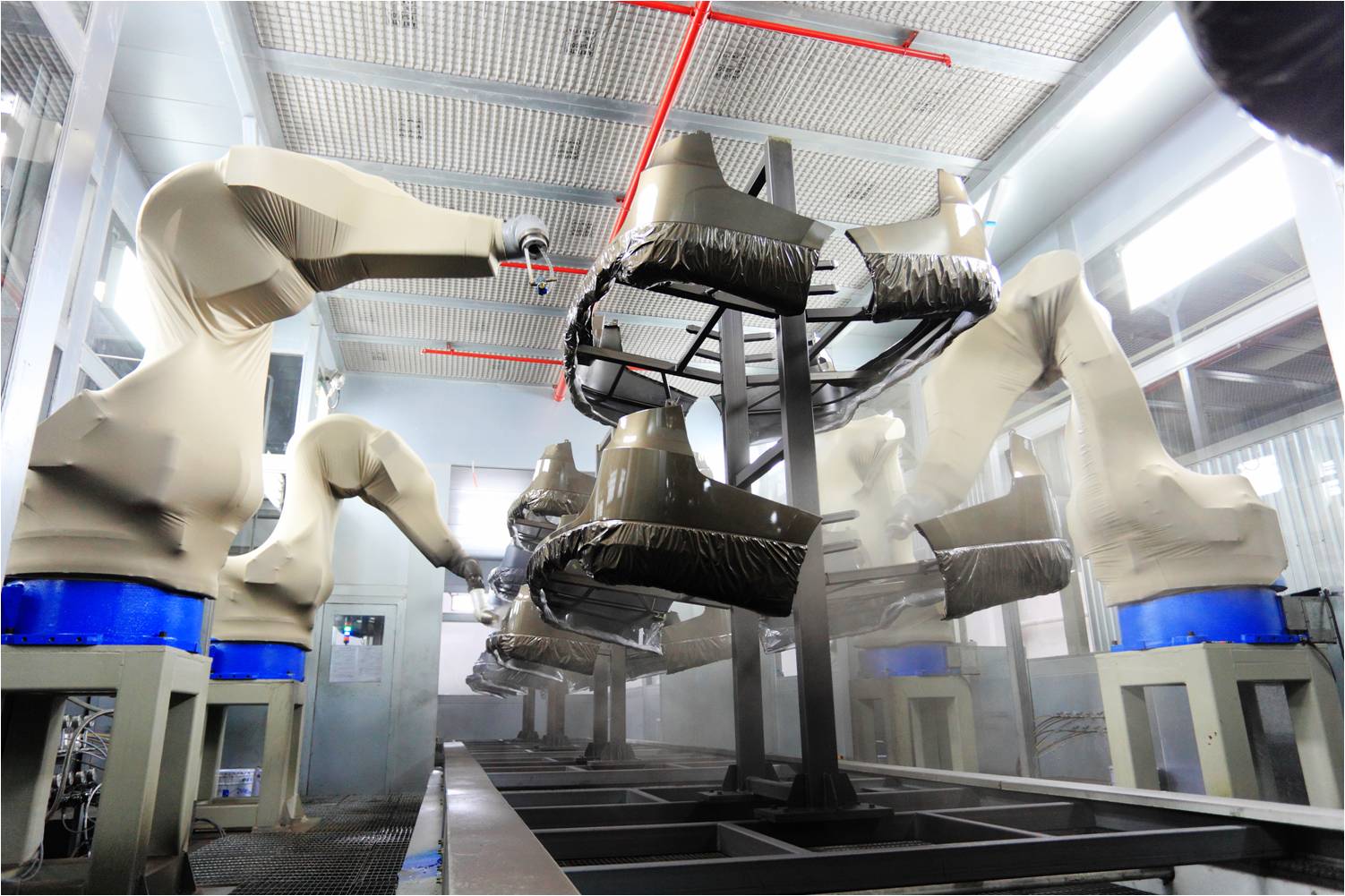 目前,公司已建立起前后保險(xiǎn)杠自動(dòng)噴涂生產(chǎn)線、后部下車體臺(tái)車自動(dòng)線、前圍板機(jī)器人工作站、前大梁機(jī)器人工作站、前地板雙向往復(fù)+臺(tái)車自動(dòng)線等多條柔性化生產(chǎn)線。