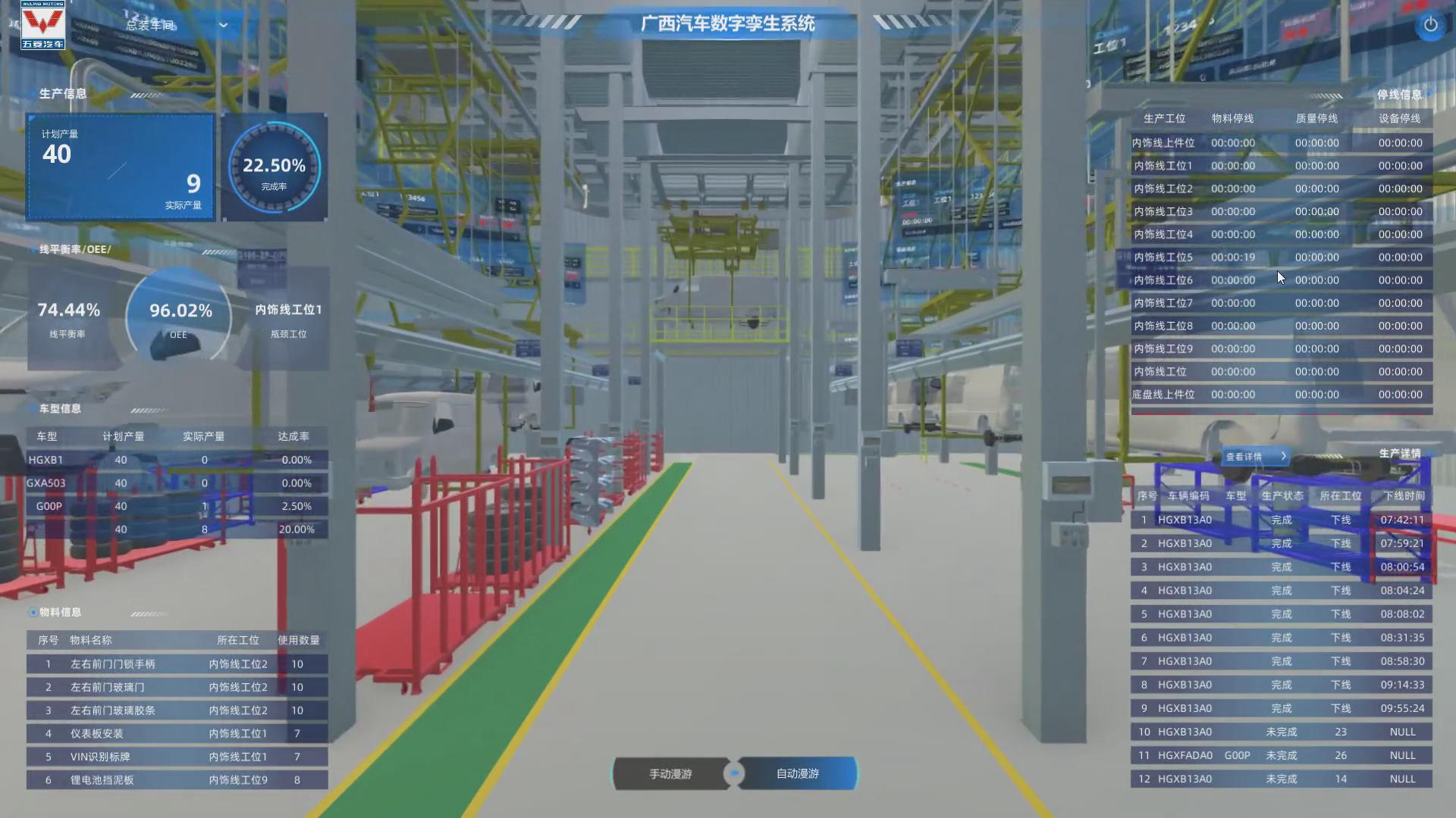 近幾年,廣西汽車集團(tuán)加碼工業(yè)互聯(lián)網(wǎng),用“數(shù)”賦“智”,數(shù)字孿生項(xiàng)目就是其中一個重要的項(xiàng)目。目前,該項(xiàng)目已經(jīng)實(shí)現(xiàn)了一個工廠物理仿真應(yīng)用,新能源物流車焊裝、總裝2個車間物理仿真應(yīng)用,生產(chǎn)線370個以上數(shù)字孿生模型建模及設(shè)備信號接入,基于數(shù)字孿生技術(shù)的產(chǎn)品設(shè)計(jì)與仿真、協(xié)同工藝規(guī)劃、能效優(yōu)化分析、車間生產(chǎn)調(diào)度優(yōu)化、生產(chǎn)物流精準(zhǔn)配送等功能。
